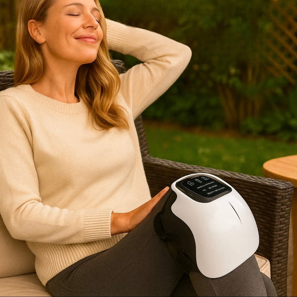 Der Relaxio™ Knie Therapie Pro entlastet dein Knie sofort und kombiniert Wärme, Vibration sowie Infrarot-/Lasertherapie für spürbar weniger Schmerzen und mehr Beweglichkeit. Ideal bei Überlastung, langem Sitzen oder nach dem Sport – für ein leichtes, freies Kniegefühl im Alltag.
